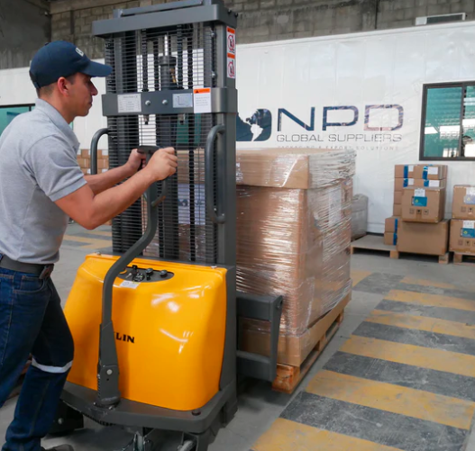 🔹 Altura de elevación: hasta 4 metros, ideal para manipulación de racks y estanterías.